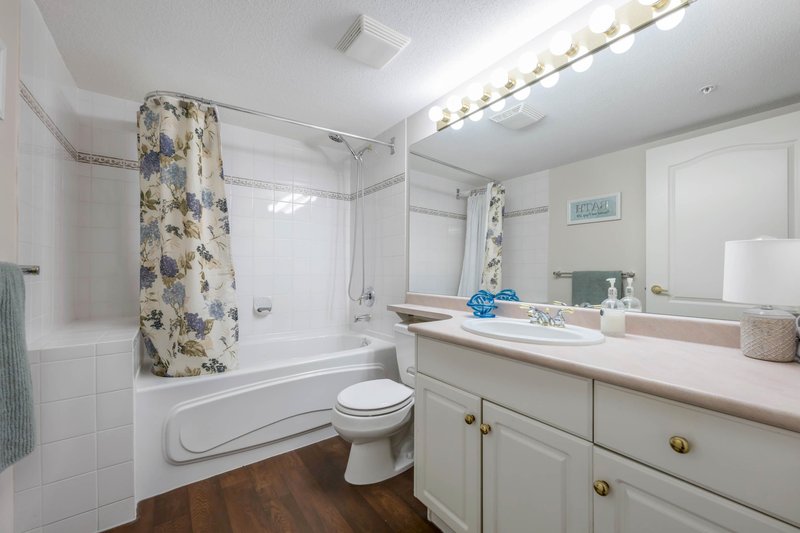 Welcome to Stratford Gardens - a beautiful oasis in South Surrey! This lovely home features 2 bedrooms (one functions as a den) and 2 full bathrooms - as well as ample storage and an eat-in kitchen. Fresh new paint and carpeting throughout - you''ll love the large balcony overlooking the quiet garden courtyard. Everything is at your fingertips: just steps to transit, the library, shopping - and great restaurants. This complex is extremely well managed with over 1.5M in contingency - pride of ownership shows throughout. No age restrictions - 1 dog or one cat allowed, - this unit has one parking spot plus a storage locker. Whether you''re a downsizer or a first time buyer - you''ll appreciate the value! Make your appointment today!