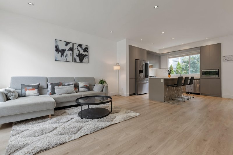 PRICED TO SELL...Welcome to Carson – Where Style Meets Convenience! This modern 3 bed, 3 bath townhome offers 1,406 sq.ft. of open-concept living with a bright living and dining area. The chef-inspired kitchen features a gas range, LG SmartThinQ appliances, designer lighting, and a large island—perfect for entertaining. Upstairs, enjoy spacious bedrooms with high ceilings, creating an airy and comfortable retreat. Step outside to a private landscaped backyard, and enjoy added comforts such as central A/C, forced-air heating, laminate flooring, and a side-by-side double garage with epoxy flooring. Located in the heart of Grandview, just steps to schools, parks, the Aquatic Centre, shopping, dining, and transit