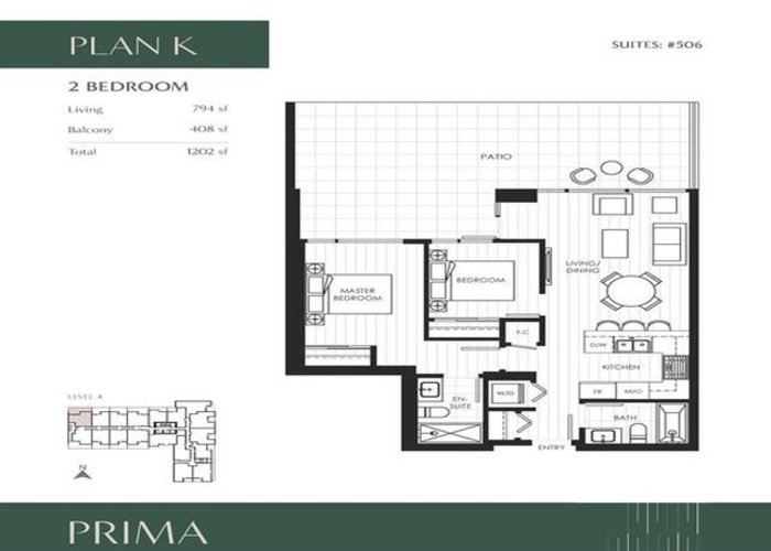 Experience elevated urban living at Prima. This thoughtfully designed two-bedroom, two-bathroom residence is an excellent choice for growing families. The home features an impressive 402 sq. ft. private patio — a rare offering — providing ample space for outdoor entertaining, family gatherings, or relaxing in the fresh air. Ideally situated in the vibrant heart of Richmond, just steps from Richmond Centre Mall, public transit, shops, dining, and parks. Completed in 2022, the building showcases contemporary architecture, quality craftsmanship, and premium finishes throughout. Residents enjoy access to outstanding amenities, including a beautifully landscaped rooftop garden, a fully equipped fitness centre, and a fully equipped fitness centre, and an elegant multi-purpose room.