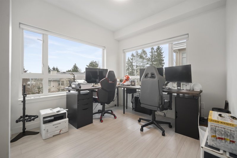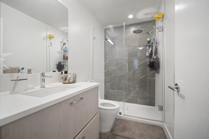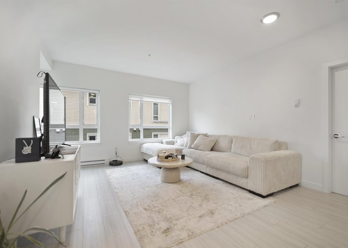 Welcome to Q5, a modern low-rise condominium located in the heart of Central City. This never-lived-in, spacious 1,027 sq.ft. corner unit features 3 bedrooms, 2 full bathrooms, 2 parking stalls, and 1 storage locker. Situated on the 4th floor, this bright home offers an open-concept floorplan with a contemporary kitchen complete with quartz countertops and stainless steel appliances. Laminate flooring throughout and a highly functional layout with the primary bedroom separated from the other two bedrooms for added privacy. Enjoy two large balconies—one off the primary bedroom and another off the living room. Steps to elementary schools, shopping, supermarkets, liquor store, transit, and SkyTrain. A must-see, move-in-ready home.