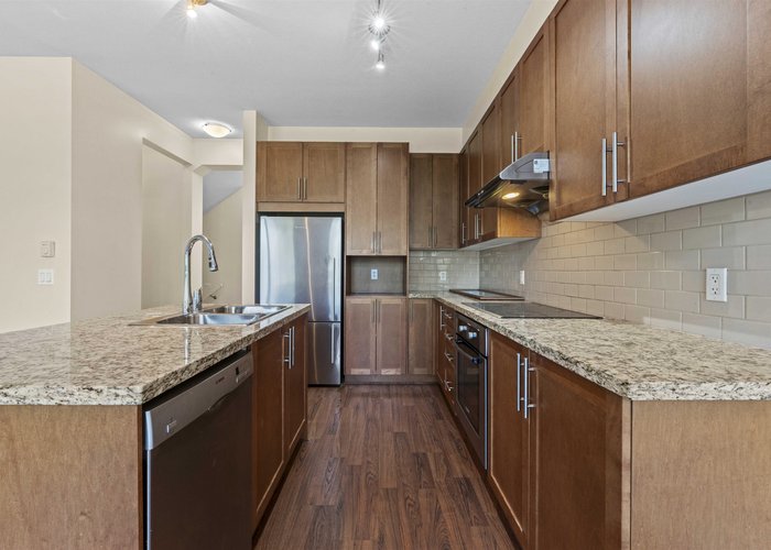 Gorgeous executive townhome at Cathedral Grove by renowned Polygon. Spanning close to 2000 sqft, this 4-bdrm/3.5-bath home offers ideal blend of space, comfort & style. Fresh new paint throughout, Open living/dining rm, separate family rm, gourmet kitchen w/ granite countertops, S/S appliances. Cozy nook opens onto spacious deck, ideal for morning coffee. 3 generously sized bdrms & 2 baths upstairs, walk-in closet in master bdrm. Ensuite bdrm in lower level, perfect for teens/guests/office. side-by-side 2-car garage. Clubhouse features outdoor pool/hot tub/gym/lounge/theatre. Prime location: walk to Sunnyside Elem, Southridge School, Morgan Crossing shops/restaurants. Minutes to Community Centre, Hwy 99. Assessment $1,041,000. Excellent to live-in or invest.