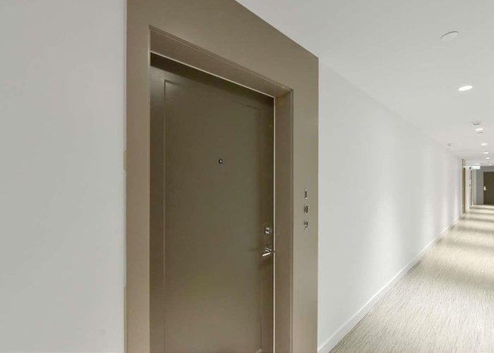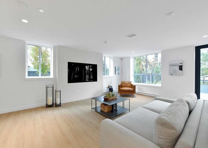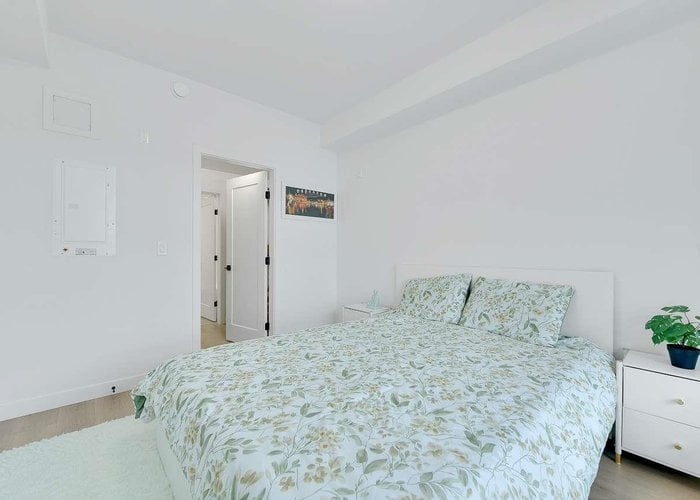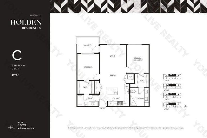 Welcome to Holden Residences, 2-bed/2-bath , 900SQFT Home features an open concept with 9'' ceilings. Situated on the ground, Both bedrooms with a walk-in closet and ensuite . Finishes include polished quartz countertops with full height tile backsplash, stainless steel kitchen appliances by Fisher & Paykel including an industrial-style gas range and double-drawer dishwasher. Offers rough-ins for A/C and a gas BBQ outlet on the deck. one parking stall, one storage locker .Roughed in for...A/C, future EV Chargers, Gas connection on patio for BBQ,