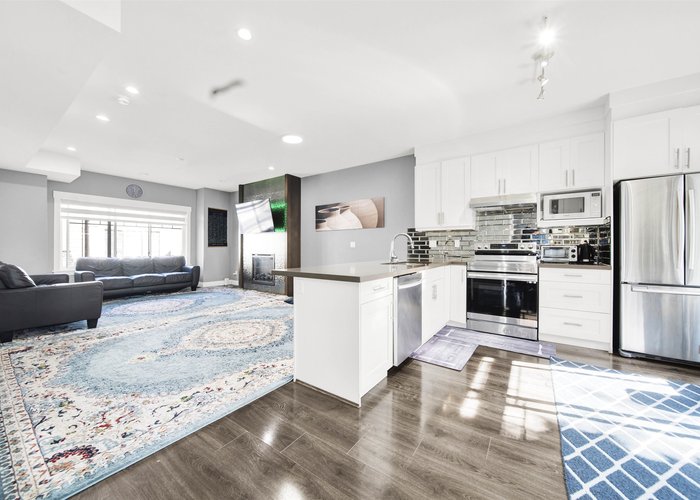 Discover this well-maintained 4-bedroom, 4-bathroom townhouse in the heart of West Newton. Spanning three levels, this bright and spacious home features an open-concept main floor, ideal for family gatherings and everyday living. The upper level offers three roomy bedrooms, while the lower level includes a private fourth bedroom with an ensuite—perfect for guests or extended family. Situated in a sought-after neighborhood close to schools, parks, shopping, and the Sikh temple, with easy access to major routes. This is a fantastic opportunity to own a versatile and conveniently located home. Book your private showing today!