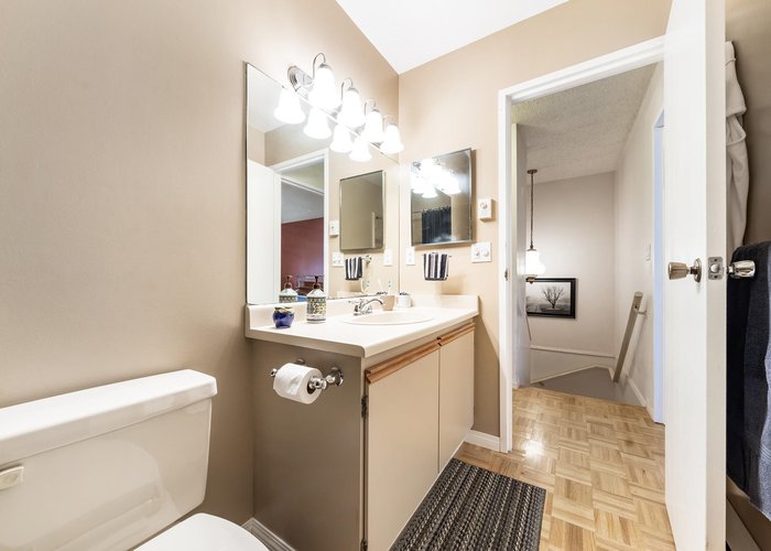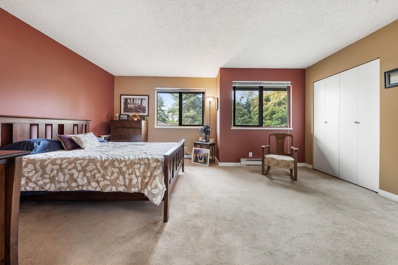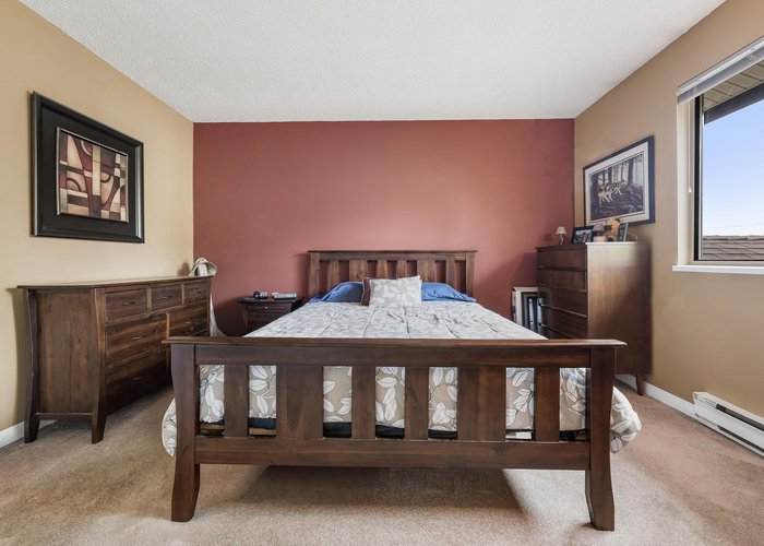 OPEN HOUSE Sunday Oct 19th - 1-3PM - Tucked away in the quiet section of Wedgewood Estates, this south-facing townhome offers exceptional privacy. On the main floor, the u-shaped kitchen is thoughtfully laid out with a view to your living room & the sunny, fully fenced patio & greenspace - ideal for entertaining, gardening or relaxing. The oversized laundry room offers generous storage plus there’s a convenient 2-piece bath featuring a comfort-height toilet & extra storage. Upstairs, find 3 full sized bedrooms, including a spacious primary with bright windows & no neighbours looking in. The complex is well maintained, w/newer roofs & fencing, tennis & basketball court, low $367 p/m strata fee & strong CR Fund. Prime location - Walk to Shops, rec center schools & transit 2 pets, any size!