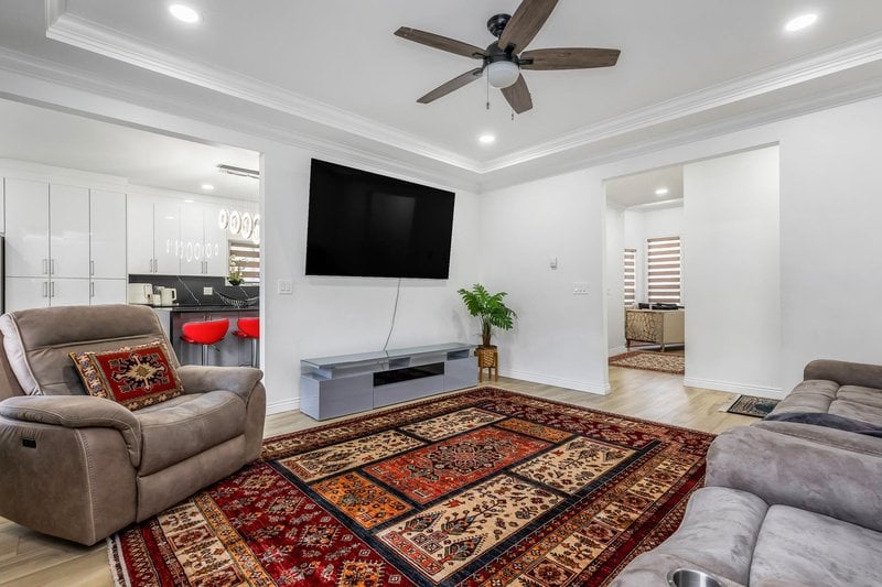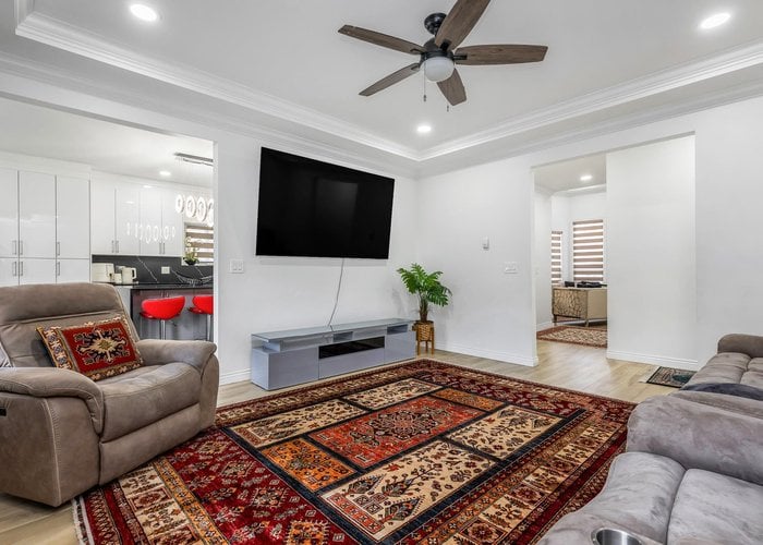 Beautifully updated home with 2 basement suites! Features a stunning new kitchen with upgraded appliances, a large island, and plenty of storage. The main floor offers two living areas, including one with high ceilings, plus a big den that can serve as an extra bedroom. Upstairs are four large bedrooms, including a primary suite with a massive walk-in closet and a jetted tub. The basement includes a 2-bedroom and a 1-bedroom suite, both great mortgage helpers. Enjoy a fenced private backyard with a covered deck, perfect for year-round entertaining. Additional updates include new flooring, light fixtures, and blinds. Nestled in a quiet cul-de-sac, this home offers an excellent location close to all amenities and schools.