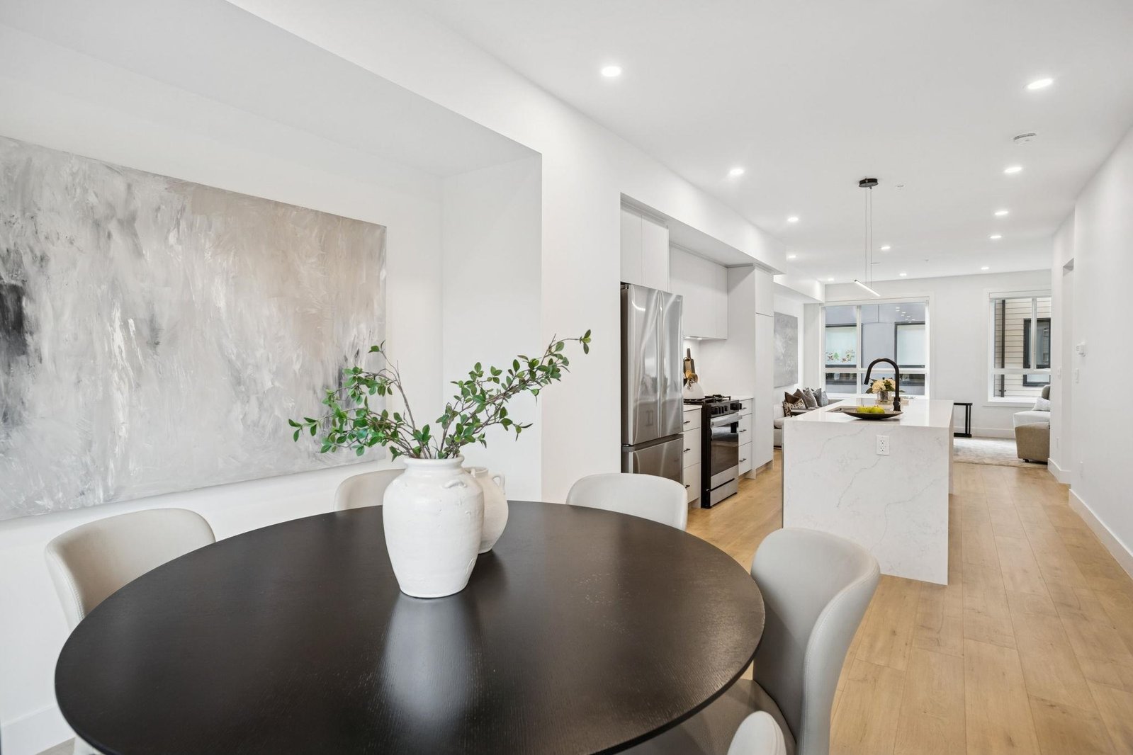 BRAND NEW 3 BEDROOM TOWNHOME WITH ROOFTOP DECK! This townhome features an open concept kitchen with sleek cabinetry, large kitchen island with quartz waterfall countertops, stainless steel appliances including gas range, flowing on durable laminate flooring into the spacious living and dining rooms and opens onto a patio with gas hookup. Appreciate 9'' ceilings, oversized windows, forced air heating/air-conditioning and roller blinds throughout. Above is a primary suite with 4 piece , double vanity ensuite and 2 additional spacious bedrooms sharing a beautifully contemporary bathroom. This home features a 428SF rooftop deck and garage for 2 vehicles and EV charging! ***OPEN HOUSE: SAT, DEC 6 1-3PM & SUN, DEC 7 2-4PM***