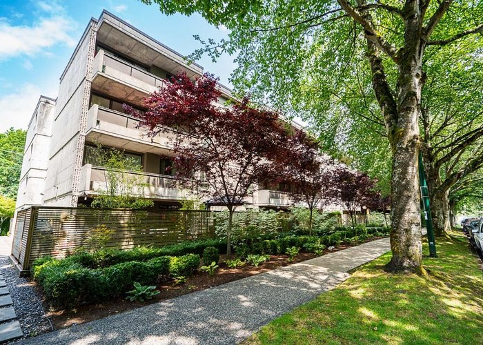 Incredibly rare concrete low-rise in Kits on a quiet, tree-lined street North of 4th! Enjoy a large, fenced 200 sq ft composite deck, perfect for outdoor living. This well-maintained 2 bed/1 bath home features a spacious primary bedroom & versatile 2nd room (no window) ideal as a bedroom, den, or office. Also includes in-suite storage. St. Claire Court is an exceptionally run strata with major upgrades: windows & exterior (2015), pipes (2016), parkade membrane, landscaping (2018), elevator (2019) & roof (2022). In-suite laundry is permitted by strata; kitchen has hookup for a dishwasher. Steps to Kits beach, Granville Island, restaurants, transit & downtown. Includes parking & storage locker.