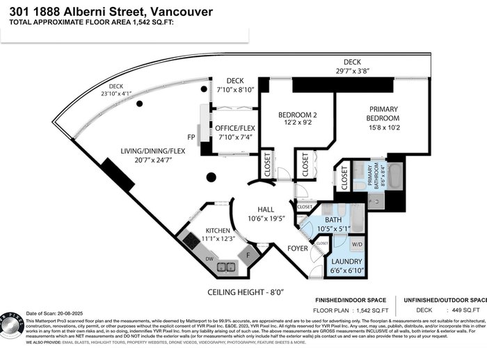 Spacious 2-bed, 2-bath home in the Residences at Alberni, seamlessly blends elegance with functionality. A grand marble entryway opens to an expansive living area, featuring over-height floor-to-ceiling windows that flood the space with natural light and overlook a tree-lined street from the wraparound balcony. The home boasts a large primary bedroom with a jetted-tub and separate shower in ensuite bathroom, a generously sized 2nd bedroom, and a bright, airy home office. The full-size laundry room offers ample space for both washer/dryer, with room for ironing and storage. Enjoy full amenities - indoor swimming pool, whirlpool, fitness centre & sauna. Located in highly desirable west of Denman location, steps from Stanley Park, Lost Lagoon, the Seawall and shopping/dining on Robson Street.