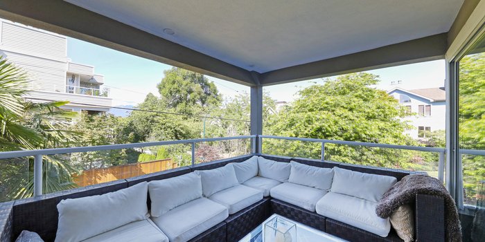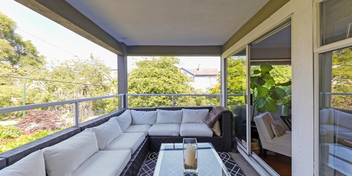 Looking for location, this is it! Steps to Kits Beach you'll love this bright oversized 1 bedroom boasting a serene outlook on the NE corner of this small 14 unit strata. Both the bedroom and living area have high vaulted ceilings. Loads of natural light streams into this home. The balcony is a spacious 137 sq feet and is accessed off the living area. The overall layout is an open concept contemporary plan. The suite is freshly painted. Kitchen and bathrooms are waiting for a remodel. Sorry rentals are at max. This is a gem of a suite and won't last. All viewings are strictly by appt only.