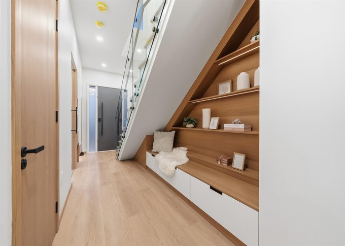 Exceptional NEW 1/2 DUPLEX (NO STRATA FEE) with 2-BDRM LEGAL SUITE in a highly desirable North Delta location; walk to schools, parks, shops & transit. This home offers radiant heating, heat pump, full AC, and stucco exterior. Upstairs features 3 spacious BDRMS incl. a stunning primary suite with private balcony & spa-inspired ensuite. Main floor includes a versatile office/4th BDRM, large sunlit family room, and a spacious kitchen and spice kitchen with premium appliances, oversized island, brass fixtures, and designer lighting. Built-in storage, wall accents, and premium finishings throughout add style and function. Move-in ready!