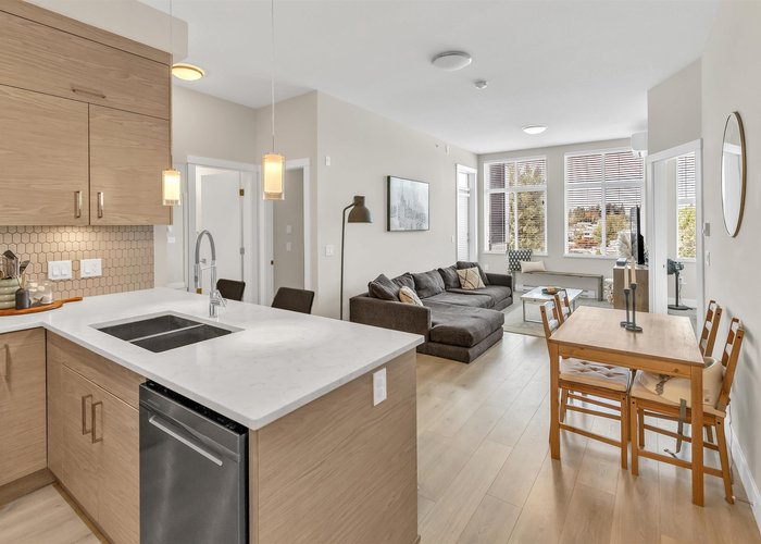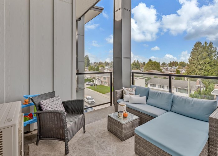 Welcome to the Onyx — a centrally located Abbotsford condo community offering exceptional convenience and comfortable contemporary living. This top-floor 2-bedroom plus den, 2-bath residence gives you both privacy and light, with the added advantage of being on the building’s 4th (top) level for quieter living and great sightlines. Step inside to an inviting layout designed for everyday life and entertaining. The flexible den is perfect as a dedicated home office, study, or small guest room. Two full bathrooms mean mornings are simpler for everyone. The bedrooms are well-proportioned and separated from the living area for added privacy. Gas range, and stainless steel appliances bring this kitchen to life, and bring your morning coffee out on the patio to enjoy the beautiful views.