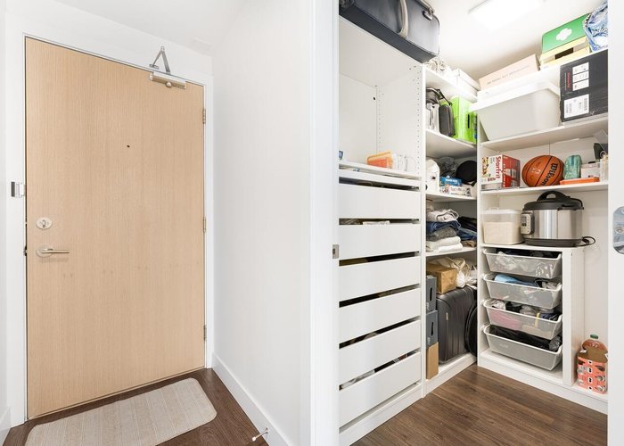 Experience upscale living in one of Vancouver''s most dynamic waterfront communities. This well-designed 1 bedroom + den home features air conditioning , providing year-round comfort. The building offers an impressive selection of amenities, including a landscaped courtyard with community garden, a full fitness centre, indoor pool, hot tub, sauna/steam room, two squash courts, basketball court, dance/yoga studio, party lounge, meeting rooms, and multipurpose spaces. Convenient retail, cafes, and dining options are right downstairs, with easy access to Adcy Beach and nearby parks. Energy-efficient features such as a Nest thermostat, hot-water-on-demand system, and full-size appliances add to the home''s appeal. Easy to show-book your viewing anytime!
