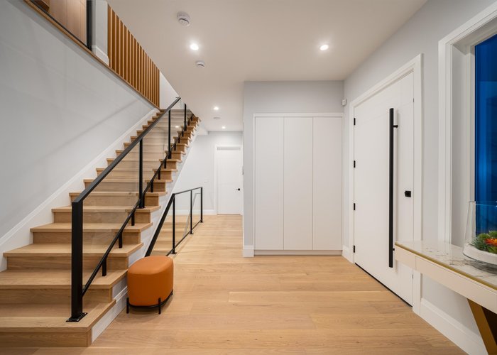 Tucked along a quiet street in prestigious Pebble Hill, this brand-new contemporary residence offers beautiful mountain and water views and over 5,100 sq.ft. of refined living on a 7,218 sq.ft. lot. A grand foyer with soaring ceilings opens to bright, open living spaces filled with natural light and hardwood floors throughout. The gourmet kitchen features premium appliances, custom cabinetry, a large stone island, and separate wok kitchen. Offering 7 bedrooms and an open den, including a serene primary suite with spa-inspired ensuite. Legal 2-bedroom suite with private entrance adds flexibility for extended family or mortgage helper. Radiant in-floor heating, A/C, HRV and media room. Ideally located close to top schools, parks, beaches and everyday amenities.