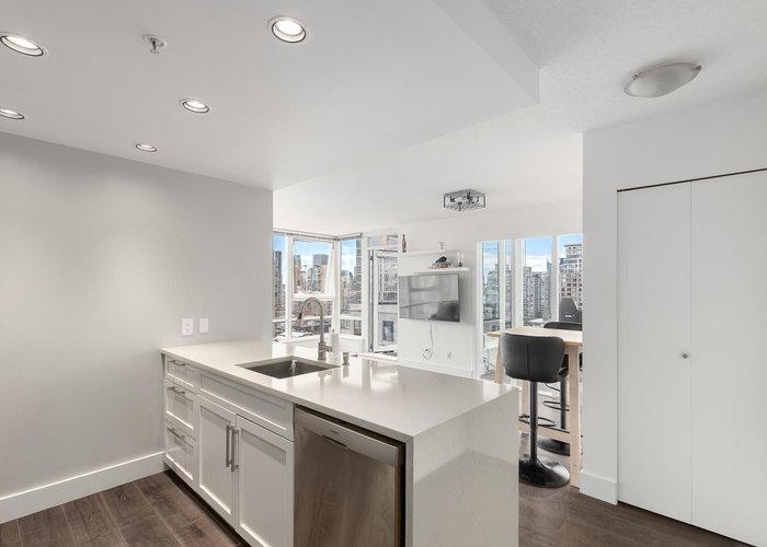 Prepare to be truly impressed by this spectacular high-floor view residence at The Max by Concord Pacific. Perfectly positioned on the coveted southwest corner, this designer-renovated suite has been thoughtfully reimagined to offer exceptional comfort and functionality. Upgrades include wide-plank engineered hardwood, sleek new tiling, elegant quartz countertops, premium appliances, and a generous walk-in closet. The smart corner layout provides space for a dedicated home office, all while showcasing breathtaking panoramic views over Yaletown. It''s no wonder this is considered the most sought-after one-bedroom floor plan in the building. Enjoy the vibrant Yaletown lifestyle in style, which with resort-style amenities including a full-time concierge, indoor pool & fitness facility. Welcome