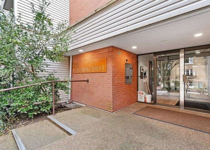 LOCATION, LOCATION! Fantastic, rarely available 837 s.f. 2 bed/2 bath west-facing unit in renowned Broughton Terrace in Vancouver''s famous West End; Fully rain-screened complex featuring two buildings with a pretty courtyard. Peaceful residential setting in the heart of the West End. A Terrific layout with open concept kitchen that has ample storage space, generous sundeck and two large bedrooms to fit your furniture. Two entrances access to the unit. Great parking spot and large storage locker, approx. 10'' x 4'' full height. A quiet but very convenient location in the West End, Walk to everything in 5-10 mins: Sunset Beach, English Bay Beach, Davie/Denman/Robson streets, elementary & high school, etc. The ultimate in WEST COAST living! Rental allowed, Pets allowed, Two pets ok.