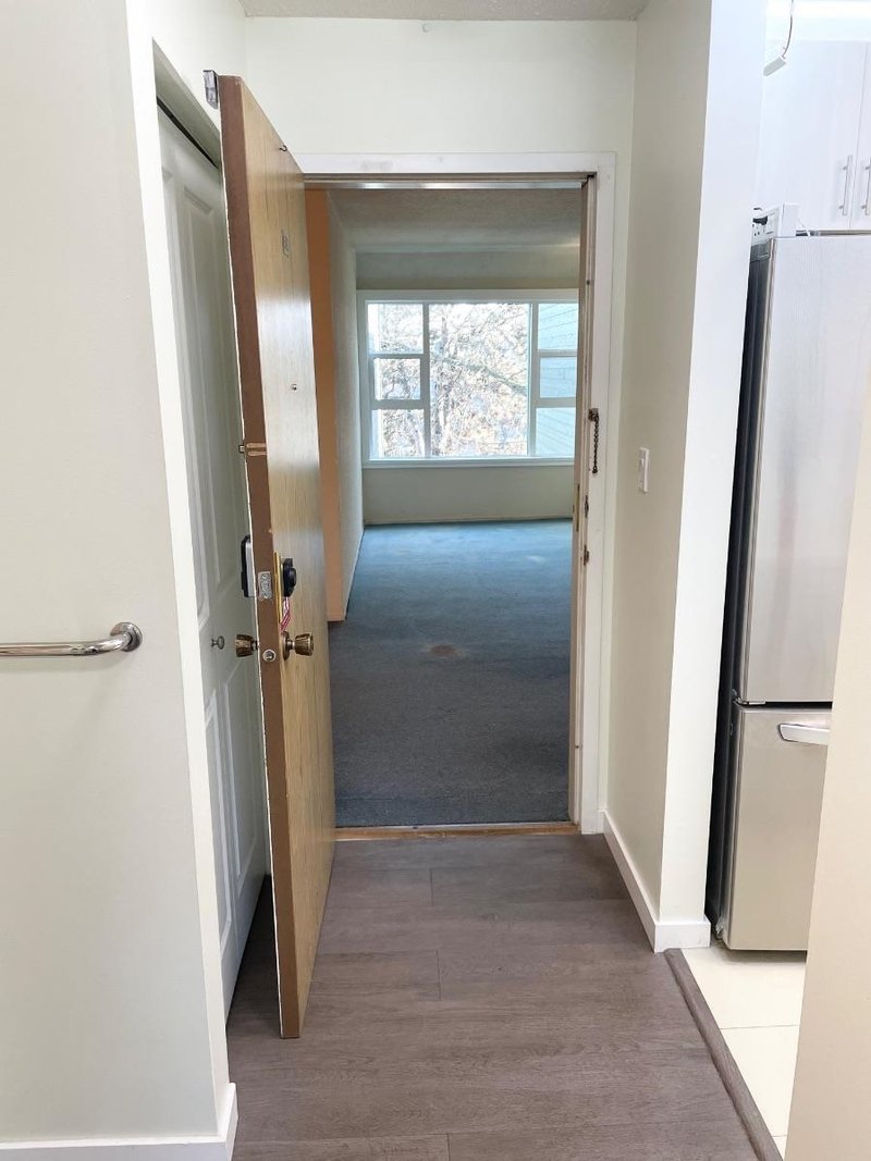 Top floor 2-bedroom penthouse in the heart of Richmond! Fully renovated even with ceiling lights and wall mounted switches for every room, that includes living room and all bedrooms! This home offers spacious 950 sqft living space with a skylight, a full-sized in-suite washer and dryer, a storage room, and a wood-burning fireplace. The unit is one of the best located in the building with an unique corridor resting area with window in front of the suite entrance. And the unit also enjoys a beautiful, quiet, largest open central courtyard view. It has everything at doorstep: bus stops; SkyTrain; public school; Kwantlen Polytechnic University; Price Smart supermarket; Landowne mall and Richmond Center; Rentals allowed, Pets allowed (with restrictions) Maintenance fee includes heat+hot water