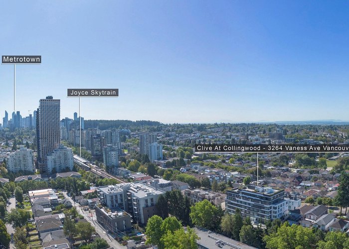 MOVE-IN READY | CLIVE at Collingwood offers the best value in East Vancouver’s Joyce-Collingwood neighbourhood. This south-facing 1-bedroom home is located on the quiet side of the building, offering peaceful living just steps to SkyTrain. One of the final opportunities to own at Clive, this concrete home can be secured with only a 5% deposit, with pricing that may qualify for PTT & GST exemptions. Superior finishes include air conditioning, gas range, smart home technology you can control from your phone, and the world’s most powerful air-filtration system for year-round comfort. Functional layouts maximize space, with storage lockers available for added convenience. Don’t wait—secure your home at Clive today.
