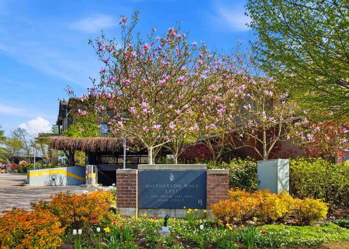 A beautiful CORNER ground floor 2 bedroom suite in MacPherson Walk East is ready for new owners! This ''home'' is very functional with a comfortable layout and generous sized rooms. Spacious primary retreat has a large windowed ensuite. South East facing ''home'' is surrounded by trees & plants for privacy. A short walk to transportation, 30min train to Downtown. Open: Sun, May 3rd, 2-4pm.
