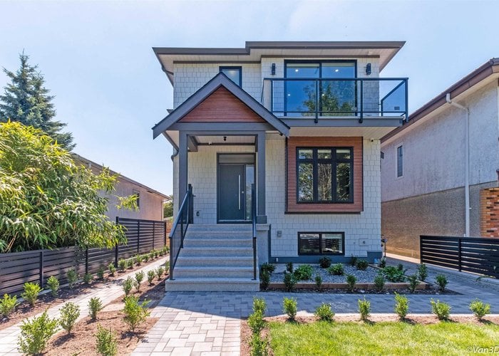Classic Character style FRONT UNIT duplex. Luxurious 3 storey modern duplex with 3 bedroom and 4 bathroom offers open concept, nuetral interior design and lots of natural light. Spacious main floor has 10' high ceiling, electric fireplace with built in TV hutch and wide plank floors. European style kitchen with Quartz counter tops. Top floor offers 9' ceiling and great balcony with MASSIVE SLIDING DOORS with mountain views. Other features include A/C, Security cameras, Radiant heating, Central Vacuum & HRV. Close to Grandview highway shopping, transit & Skytrain. BASEMENT HAS LEGAL SUITE. Lot size is 33x140.