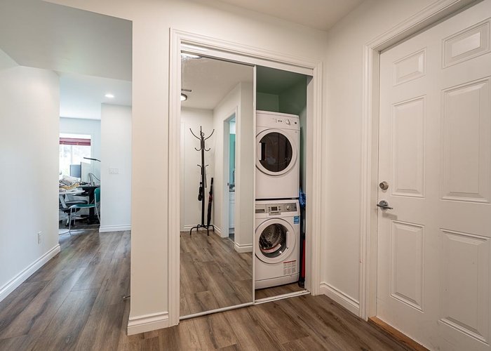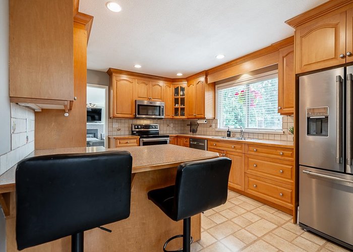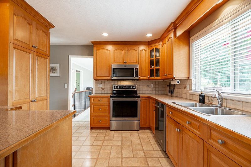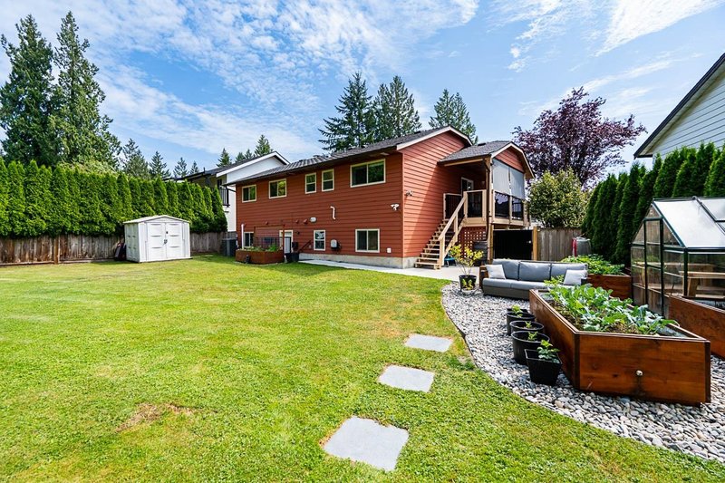 Beautifully maintained 5bed, 3bath Walnut Grove home tucked in a quiet cul-de-sac on a large, level, and private lot. The bright upper floor features oversized windows, fresh paint, new blinds, updated lighting, and a renovated bathroom (2022). The kitchen includes stainless appliances and opens to a wraparound deck with updated railings—perfect for BBQs. Downstairs offers a legal 2-bedroom suite with private entry, laundry, new fridge (2022), and dishwasher (2023), ideal for in-laws or rental income. Additional upgrades include A/C, high-efficiency hot water tank, 50-year roof, solar panels, EV charger, PEX plumbing, concrete patio, exterior paint, and self-watering garden beds. Walk to Dorothy Peacock Elementary, Walnut Grove Secondary, parks, shops, trails, and enjoy easy Hwy 1 access.