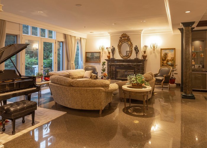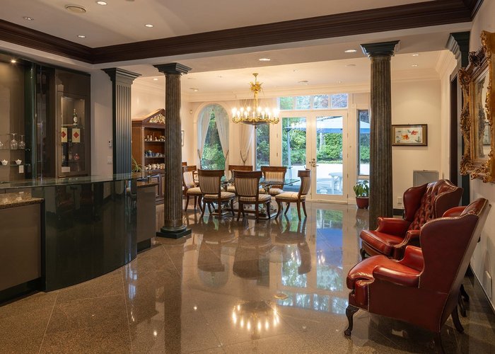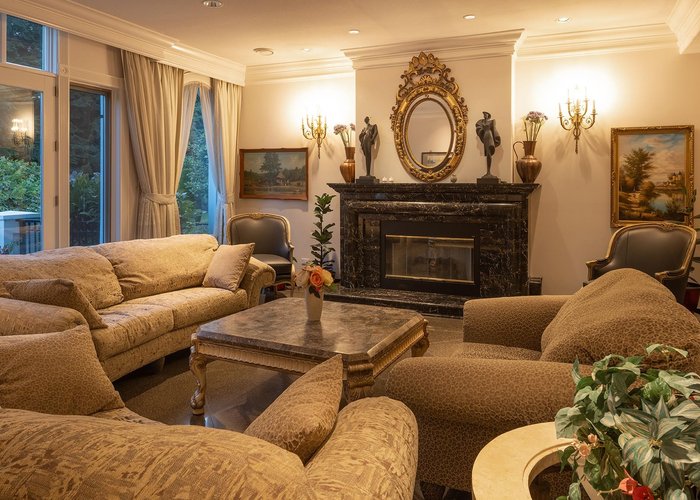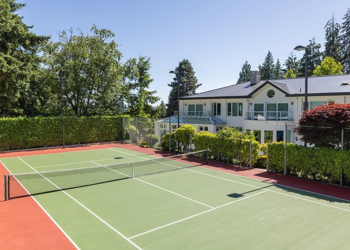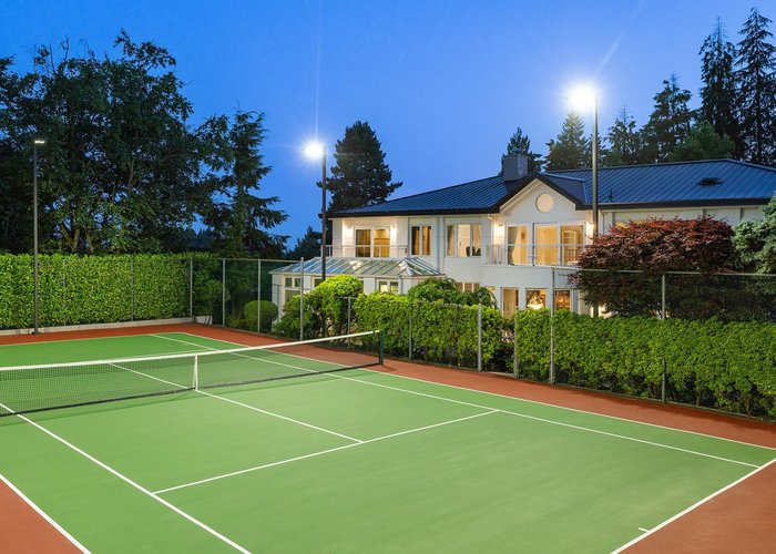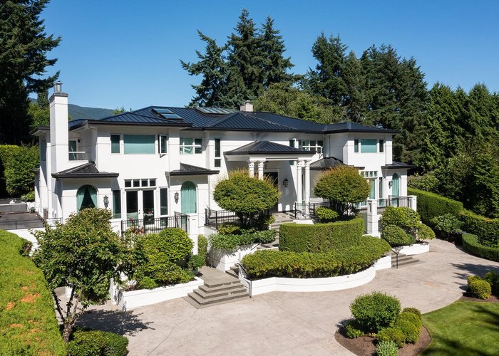 A landmark estate of timeless elegance and resort-style luxury in West Van’s prestigious British Properties. This gated 24,000 sqft property hosts a 9,700 sqft 3-level, 6-bed residence with classic architecture and exquisite detailing. A grand columned entry and sweeping staircase lead to formal living/dining rooms, elevator, chef’s kitchen with sculptural island, walk-through pantry, and separate wok kitchen. Main floor features an indoor pool with ceiling mural. Upstairs offers a sunlit lounge and serene primary suite with spa-inspired en-suite, 2 walk-in-closets & separate sitting area. Downstairs includes a fully equipped home theater. Outdoors: tennis court, manicured gardens, and lush privacy. An elevated lifestyle of sophistication and comfort.