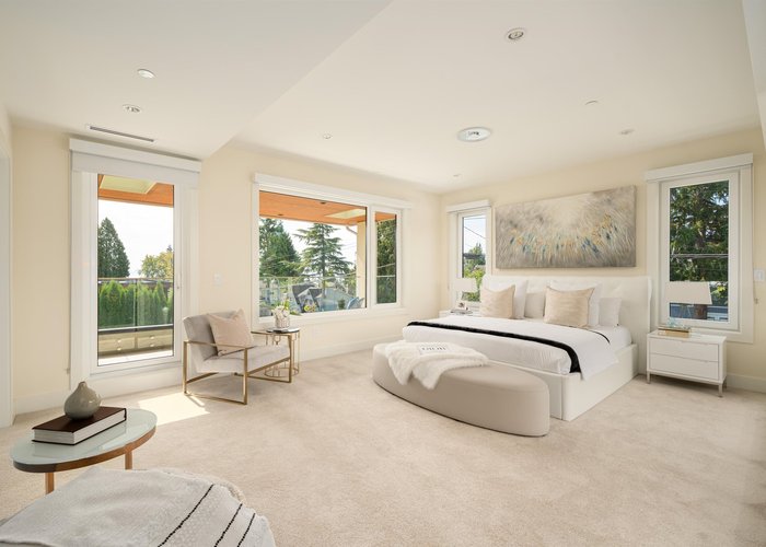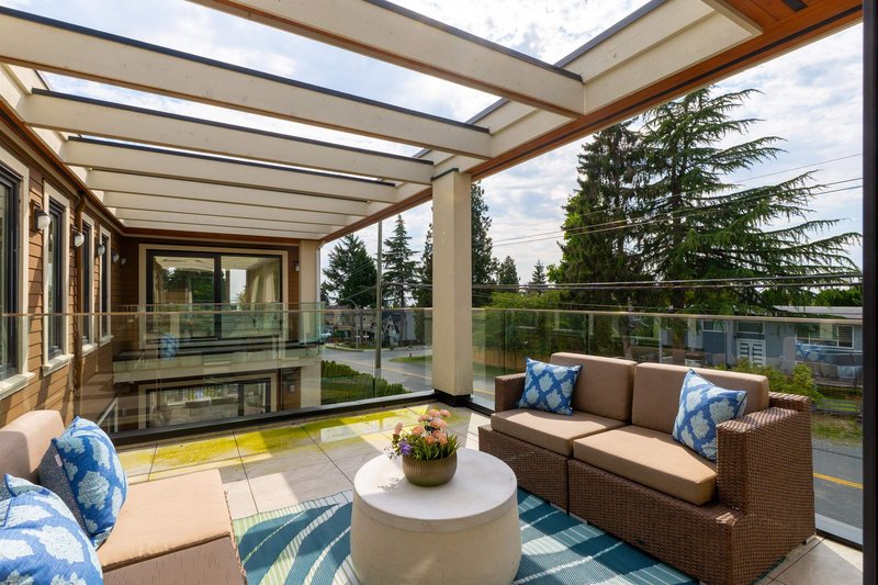 Luxurious ocean-view residence in the heart of White Rock, offering 5,600 sqft of living on a 7,000 sqft corner lot. This custom home features 5 bedrooms & 8 bathrooms with an open layout filled with natural light. Main floor boasts walnut hardwood, gourmet + wok kitchen with Sub-Zero & Wolf appliances. Upstairs has 4 ensuite bedrooms, including a master retreat with spa bath, walk-in closet, and private ocean-view deck. Basement offers media room with bar & wine cellar, recreation room, sauna, and guest suite. Walking distance to schools, beaches, parks & shopping. School Catchment: Ray Shepherd Elementary & Elgin Park Secondary. Open house: Nov 9, Sun, 2-4PM.