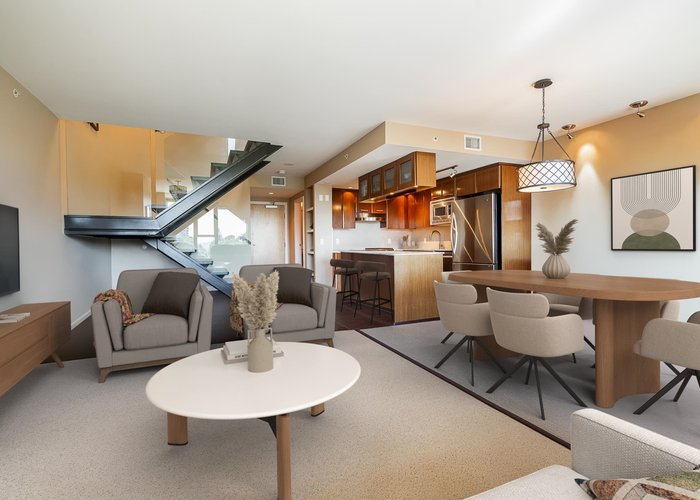 Welcome home to Mira On The Park, the crown jewel of Vancouver’s North Shore, designed by award winning Besharat Friars. This timeless, beautifully appointed, 1306 sqft PENTHOUSE exudes sophistication, comfort & style on 2 levels. Luxuriate in your 2bed,3bath+flex home offering panoramic water, mountain & park views, an inviting European style kitchen w stone counters & SS appliances & featuring 9ft ceilings, oversized windows, a cozy gas FP, AC & 2 private balconies. With exceptional amenities, 2 parking & storage & Ideally located adjacent to beautiful Victoria Park & within walking distance to shops at Central & Lower Lonsdale, this home has it all & should not be missed. Showings by apt, call to view today. Note:Some images virtually staged. OPEN HOUSE SAT DEC 6th - 2:00PM-4:00PM