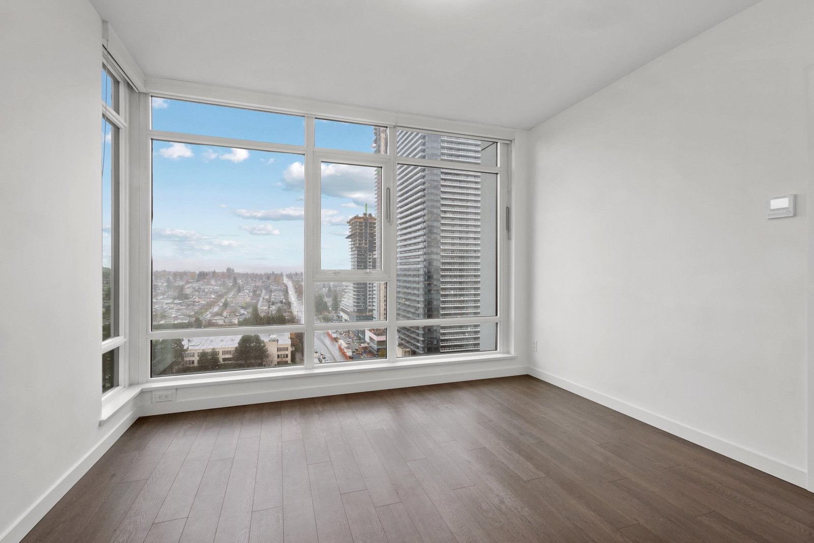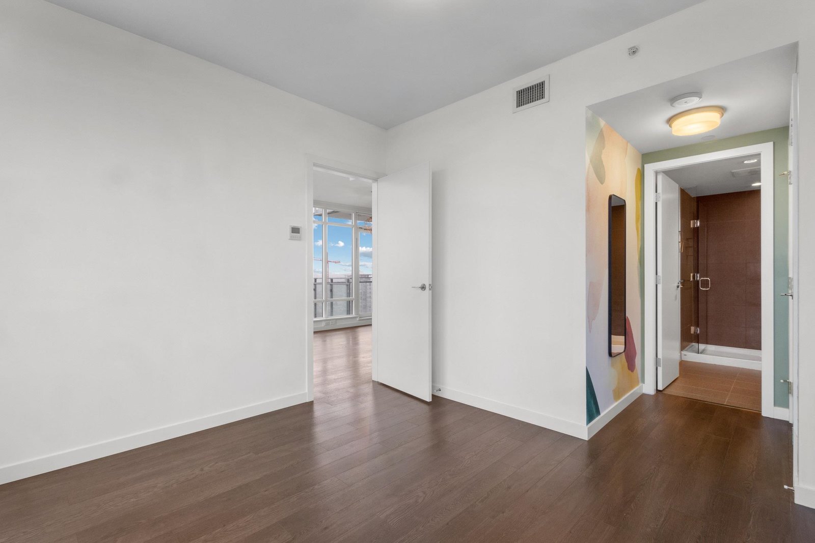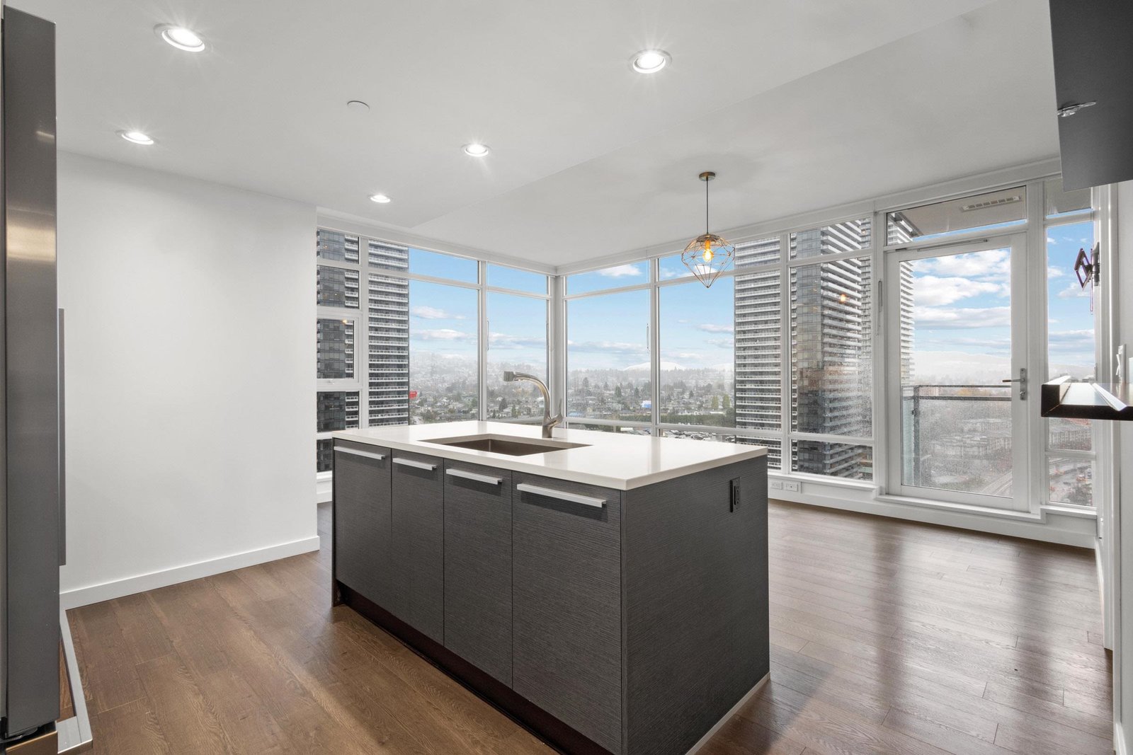 BETTER THAN NEW! Over 860sqft. 2 BED, 2 BATH, 2 STORAGE LOCKERS Freshly Painted! Bedrooms are set up for ultimate privacy on either side of the condo perfect for roommates! Spacious kitchen with Gas Cook top and Breakfast Bar, Quartz Countertops and AC for Warm Summer Days! Oversize Glass Walls capture Breathtaking Mountain Views from each Room! 24hr CONCIERGE, Fully equipped Gym, hotel style change rooms with showers, 49th Level Lounge with full Catering kitchen for up to 100 guests and 360 degree VIEWS from indoor and outdoor spaces, Basketball Court, Pickleball, outdoor Courtyards with BBQ’s for gatherings. Embrace an elevated lifestyle in this picturesque haven—with Steps to Transit, atop the Amazing Brentwood, Whole Foods and all your modern conveniences!