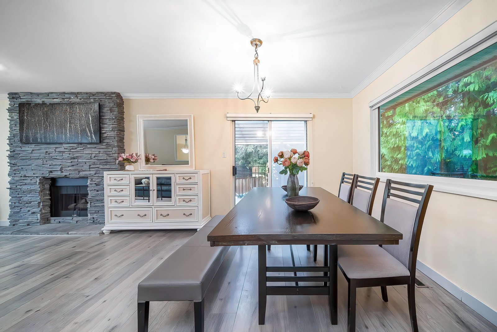 This bright, fully updated family home sits on a quiet Guildford cul-de-sac on a 7,124 sq.ft. private lot. The main level offers three bedrooms, two full baths and a sunlit living/dining area. The lower level includes a 2-bedroom suite plus a self-contained bachelor suite—each with its own kitchen and separate entry—providing three rental options with approx. $7,800/month income potential. Over $100,000 in 2024 upgrades: new glass doors and windows, new furnace + heat pump with A/C, updated mechanical systems, refreshed kitchens/baths, on-demand hot water and a fully fenced backyard with large deck. Prime location minutes to Guildford Town Centre, Hwy 1 and Johnston Heights Secondary (IB). Three kitchens in total. vancant Move-in ready.Open house 2.28(Sat) 3.01(Sun) 2-4pm
