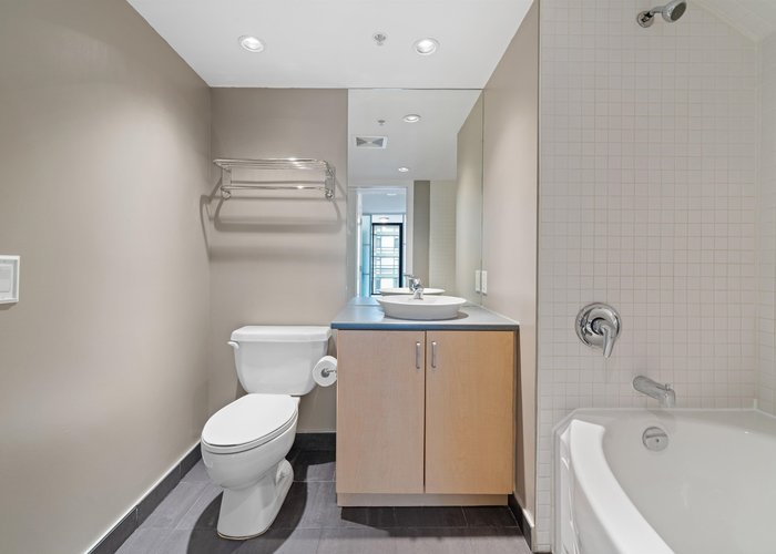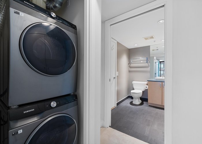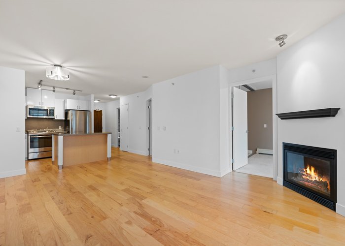 Welcome to reputable TIME! Where lifestyle meets convenience in the heart of Lower Lonsdale. This spacious 1-bedroom + den (743 SF) offers a fantastic layout with generous rooms, an open-concept living space, and an oversized balcony with beautiful North Shore mountain views. Just painted, newer floors + updated appliances. The kitchen features a gas range, quartz island, and ample storage. Relax in the inviting living room with large windows and a cozy gas fireplace. Enjoy in-suite laundry, a secure parking stall, and a storage locker. Visitor parking as well! Steps to the Seabus, Lonsdale Quay, shops, restaurants, and the John Braithwaite Community Centre. Open House: Saturday + Sunday Dec 6th and 7th 2-4pm