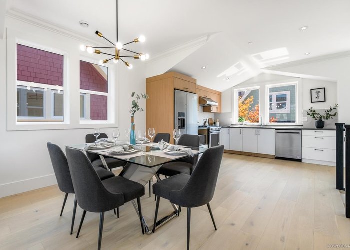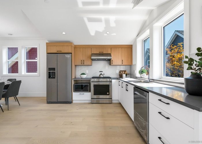 Newly Constructed The Kensington Parkside Residences, comfortable and carefree park side living. This well constructed and finely crafted home offering a total 1,315 sq/ft over 2 levels. Main floor has living room, dining room, kitchen, washer/dryer & full bathroom room. Second floor contains master with ensuite, 2nd & 3rd bedroom and full bath. Radiant floor heating, hot water on demand and HRV system. Exterior constructed with durable and long-lasting Hardie wood. Includes single car garage. Maintenance fees will decrease as strata becomes self managed. Kingcrest Park across the lane, T&T minutes away. School catchment: Lord Selkirk Annex & Elementary, Gladstone Secondary, Laura Secord Elementary, Vancouver Technical Secondary.
