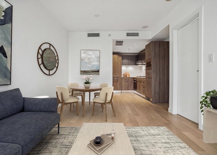 BRIGHT AND CHEERFUL 1 Bedroom at Kensington Gardens. Efficient floor plan with floor to ceiling windows, air conditioning and euro style GOURMET kitchen with gas cooktop and plenty of cabinet storage. Enjoy morning coffee on your WEST facing FULL WIDTH balcony with some mountain views. RESORT style amenities include fitness centre, OUTDOOR pool and hot tub, BBQ terrace, children''s play area, media room, party room, shared EV charging & the convenience of T & T, shops and dining all at your doorstep. Conveniently located close to Nanaimo Skytrain Station, Famous Foods, Shoppers, Trout Lake and all the best local eateries. Some photos virtually staged. Includes 1 parking and 1 storage.