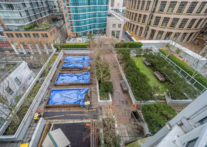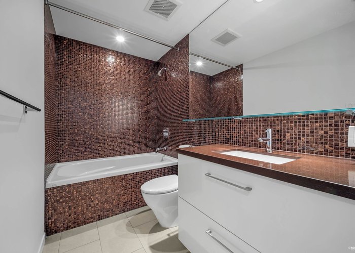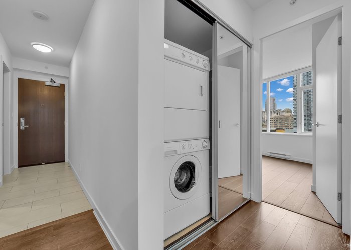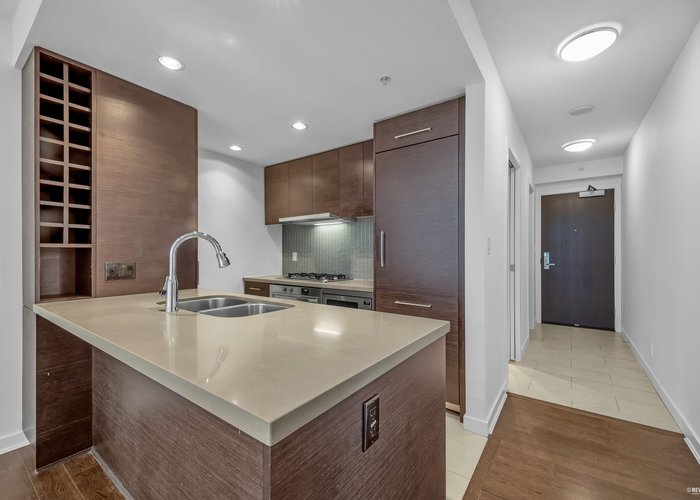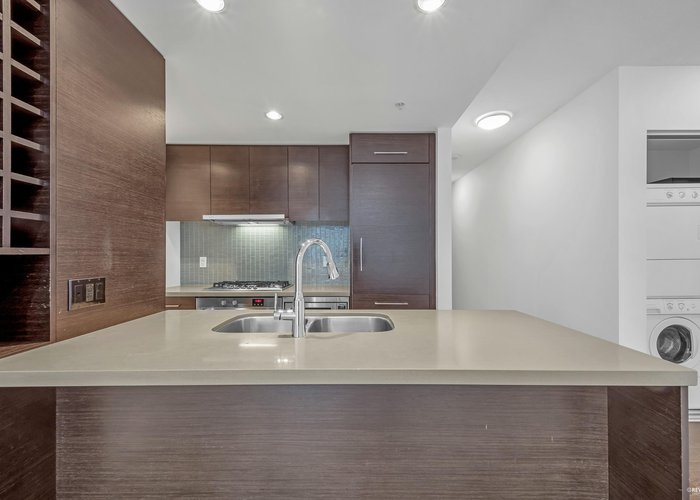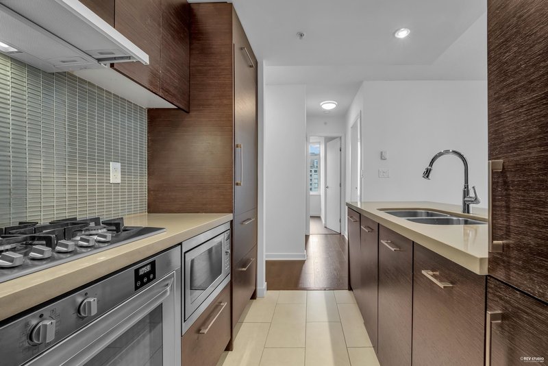 Atelier located on Homer & Robson St. This NW 882sqft 2 bath + den has plenty to offer. Featuring a very functional layout with 8''7 ceiling height in the majority of living areas. Kitchen comes with Sub Zero Fridge, Bosch D/W, AEG Gas range and granite countertop! Unit has been freshly painted and new laminate flooring installed in the bedrooms & den. Located minutes to Pacific Shopping Center, Downtown Central Library, Rogers Arena, BC Place, restaurants, Skytrain station and more! Building offers 24 hours concierge service, fitness center w/ steam room, garden lounge, meeting & party room. Perfect for investment or moving in. 1 parking and 1 storage locker included. Open House Sunday Dec 21st between 1-3PM!