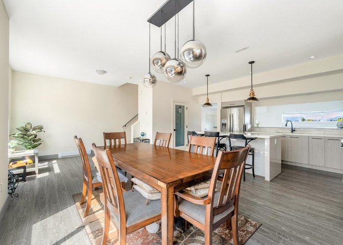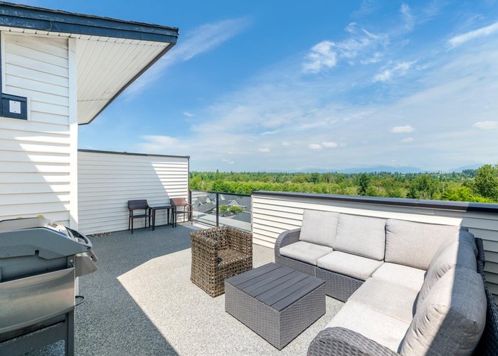 Welcome to Summit by Hayer at Sullivan Station, Surrey! This beautiful townhouse offers: Stunning Rooftop Patio: Enjoy an oversized rooftop patio with unobstructed mountain views | Double Car Garage: Convenient and secure parking | Open-Concept Main Floor: A unique, spacious layout with high ceilings, perfect for entertaining and family life | Gourmet Kitchen: A chef-inspired kitchen featuring stainless steel appliances, quartz counter top, a pantry, wine fridge, and a large kitchen island |Comfort & Style: Equipped with air conditioning and meticulously maintained, this home is spotlessly clean and ready for you to move in. | 3 outdoor space: balcony, back yard, roof top.