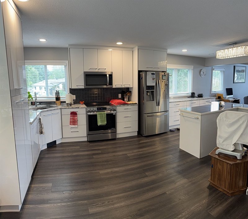 Welcome to a big beautiful updated home with LARGE SUITE backing on to greenspace. Almost 3500 sf of living space with an awesome open floor plan. Lots of light with the skylights Your new home has 3 bdrms + 2 bathrooms on the main with a wonderful open floor plan & amazing updates to the kitchen, flooring, bathrooms. Your basement is versatile offering either bedrooms, a den, bathroom for upstairs OR as a self-contained beautiful 2 bed + den, 2 bath suite. Extensive updates over the years include windows & skylights, central A/C & 70gal hot water tank, as well as appliances. RV parking, lots of extra parking, and walking distance to all levels of schools. Roughed in for a hot tub and has 40amp RV service. Beautiful deck space all around the home for entertaining and family get togethers.