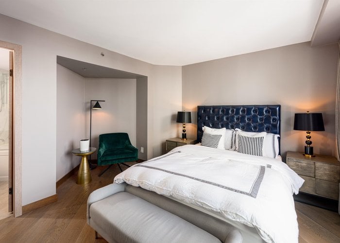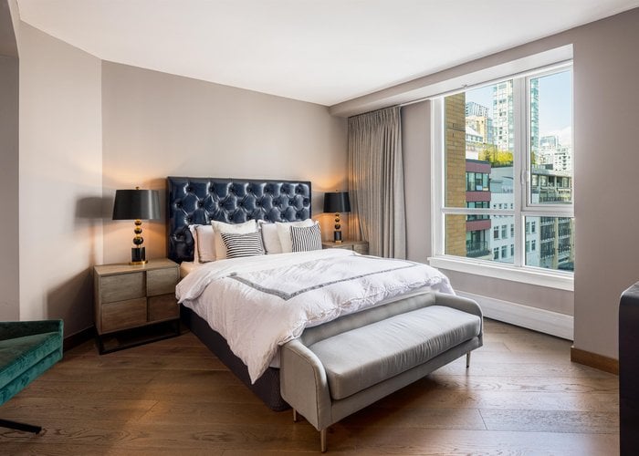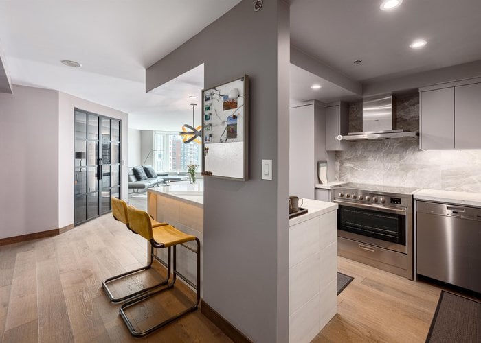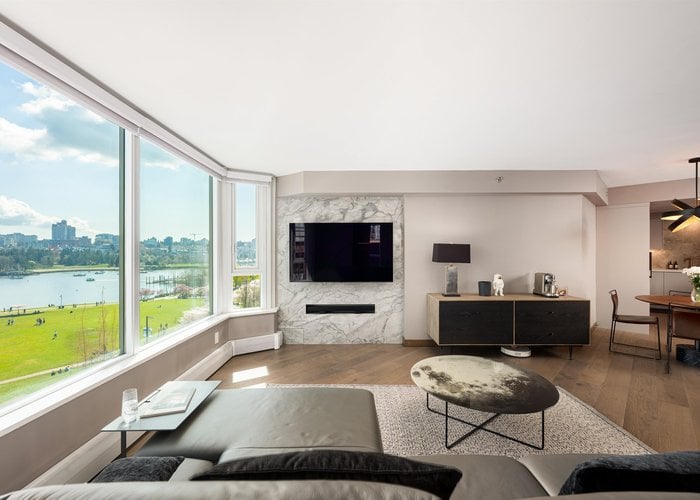Governor’s Tower by Concord Pacific. Experience vibrant downtown living in this beautifully updated 2 Bedroom + Den + Solarium home, ideally positioned with a southeast exposure that welcomes an abundance of natural light throughout the day. Enjoy unobstructed views of False Creek and David Lam Park right from your home. Meticulously renovated in 2018, featuring a stylish kitchen with custom cabinetry, modernized bathrooms with upgraded vanities, a custom walk-in display closet, premium Miele appliance package, motorized blinds in the living area and more! Top-tier amenities including an indoor swimming pool, hot tub, sauna, exercise centre, 24hr concierge service and more. Steps away from Park, the seawall, SkyTrain station, shopping and fine dining and entertainment. 1 Parking & 1 Locker