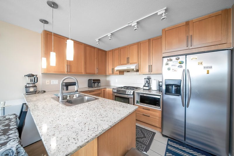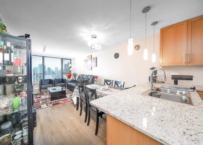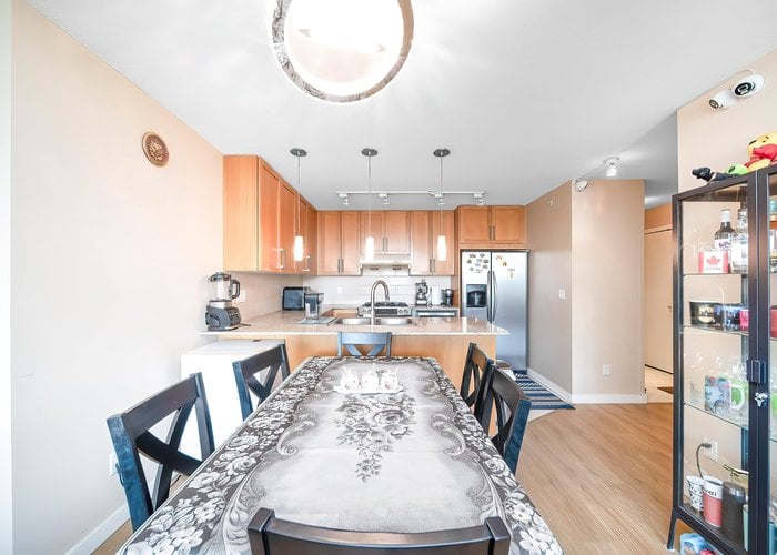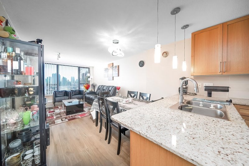 Welcome to West at Highgate Village, a quality BOSA-built concrete tower in prime Burnaby South. This bright south-facing 3 bed 2 bath home on the ideal 5th floor is perfect for families—not too high, not too low. UNIQUE to the 5th floor: ACCESS to THREE elevators and TWO separate entry points, offering unmatched convenience and safety—no more long elevator waits! Thoughtfully designed layout with no wasted space. Spacious primary bedroom. Granite counters in kitchen and baths, newer laminate floors. Large covered balcony with access from living room and bedroom. Includes TWO secure underground parking stalls and ONE storage locker. Amenities: gym and lounge. Steps to bus, Save-On, Shoppers, Club16, Starbucks, banks, clinics, library, Edmonds Centre, parks and more.Pet and rental friendly!