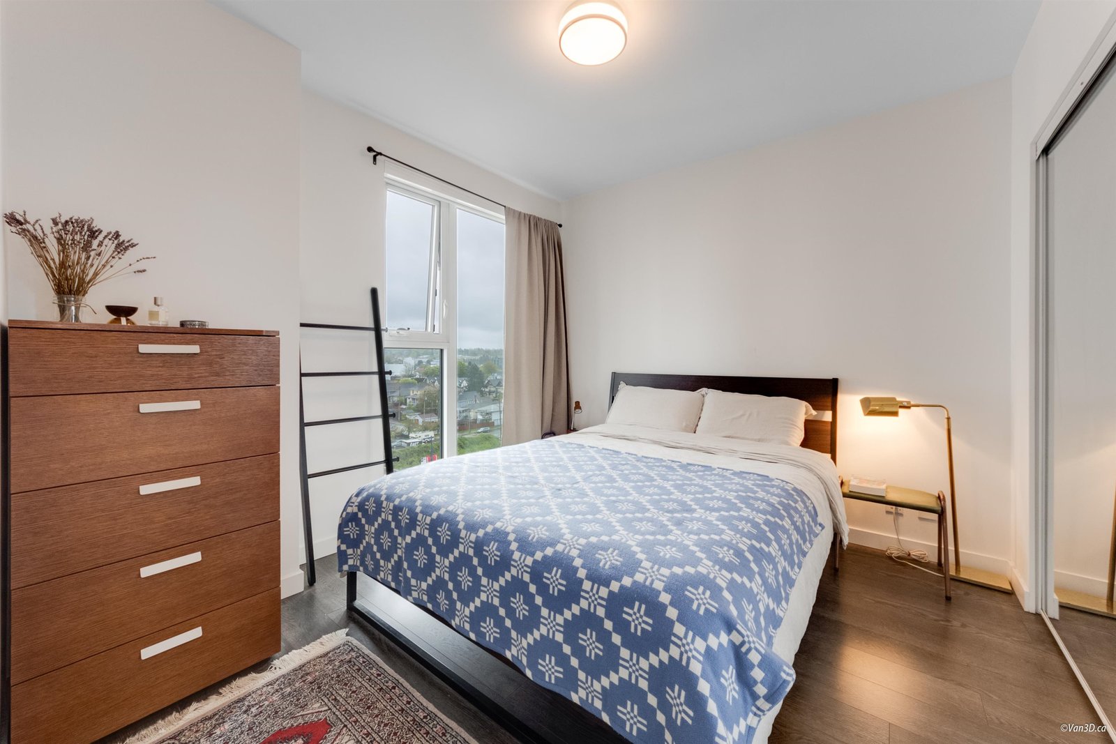 Welcome to the Raymur @ Strathcona Village! This 1 bedroom and den faces East so you can enjoy the morning sun and city views from balcony. The layout is efficient and the kitchen is modern with sleek cabinetry, S/S appliances and quartz countertops. The building amenities boast a gym, meeting rooms, landscaped rooftop terrace with garden, play area, BBQ right outside your door. 1 parking. Minutes to D/T, Chinatown and Commercial Drive. Perfect for 1st time home buyer or investor. Short term rentals allowed!