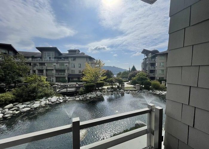 PRICED LIKE A 1 & DEN BUT 2 Beds, 2 Baths, 2 Balcony, 2 Parking unit. Recently installed dual room Air Conditioning unit is AWESOME! The split bedroom & bath plan is great as it allows a large living & separate dining area. 9 ft ceilings are enhanced by the oversized windows facing the water fountains feature & Burrard Inlet views! Inside features newer flooring, new appliances, heat producing gas fireplace, granite counter tops in kitchen & bathrooms. The faux wood beam & natural wood details in this home add a very Whistler Chalet feel. 2 balconies to enjoy the sounds of Nature that surround Raven Woods. Seasons has a fantastic Gym/Sauna, Clubhouse & newly refurbished Theatre Room, Mins to Deep Cove Shops, water sports, 2 golf courses, ski hills, endless bike/hike trails steps away!