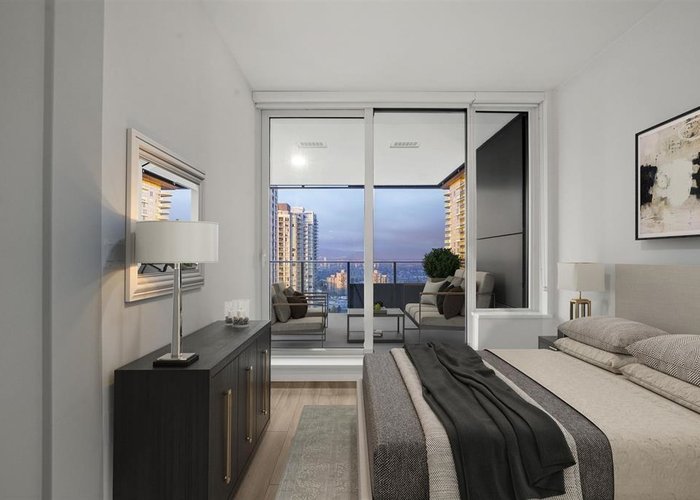 Welcome to your new home. This beautiful unit features concierge service, high-end Miele appliances, A/C, premium windows, and stunning city and mountain views. Includes 1 parking stall and 1 storage locker. The parking, locker, and car wash area are side-by-side for maximum convenience. Enjoy extensive amenities including a gym, lounge, golf simulator, table tennis, outdoor patio with BBQ, guest suite, and garden. Prime central location—just steps from Metrotown shopping, restaurants, and the SkyTrain station.