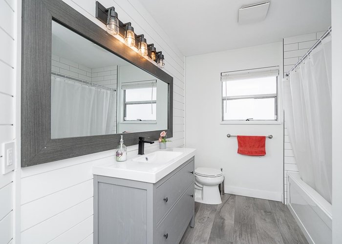 Welcome to this Fully Renovated 4 BED+Huge REC room, 3 Full bath home nestled in popular family oriented neighborhood. Upstairs you have Beautiful Open concept Living/Gourmet Kitchen area with exposed beams. 3 Good size bedrooms w/ 2 Full baths. Downstairs you have HUGE Rec rooms w/ Fireplace, Living room, Kitchen, bedroom and Full bath with 2 separate ground level entrances. Possible to make 2 suites 1 bdrm each. Seller willing to install Separate Laundry downstairs. Large sundeck overlooking private eastern exposed backyard with views of Mt Baker. Recent updates include all new bathrms,New Flooring,New lighting fixtures, vinyl deck(6yrs),Roof(10yrs) & the list goes on. Centrally located with walking distance to Sunrise Ridge Elementary, parks, shops & transit. O/H Cancelled.