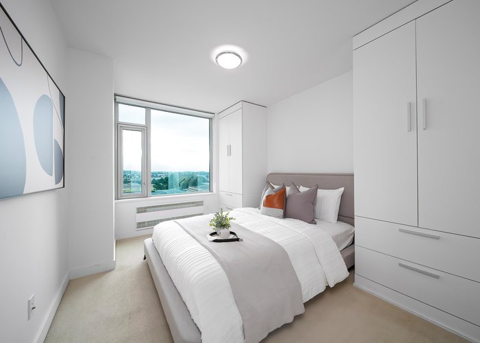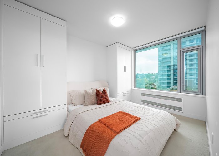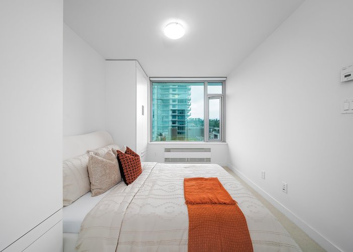 Welcome to your new home at MC2, an award-winning development by lntracorp! This 2-bedroom, 2-bathroom residence offers 760 sq ft of modern living space with a walk-out balcony and an energy-efficient passive heating and cooling system for year-round comfort. Designed by renowned architect James Cheng, the interiors feature Blomberg gourmet appliances, Caesarstone countertops, and built-in closets for maximum functionality. Enjoy premium amenities, including a 24-hour concierge, fully-equipped gym, meeting rooms, and a rooftop deck. Ideally located just steps from the Canada Line Skytrain, bus loop, T&T Supermarket, Cineplex, and the shops and restaurants of Marine Gateway. Includes 1 parking space and 1 storage locker.