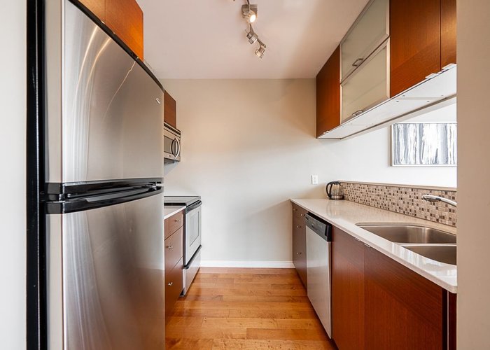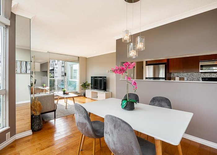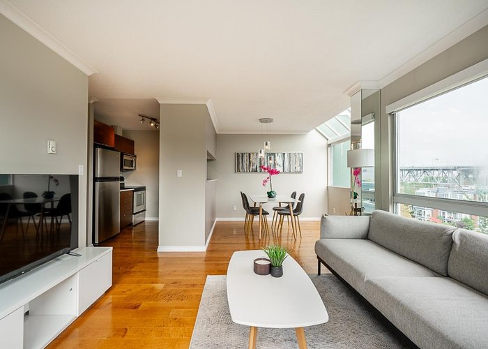 Experience waterfront living in one of Vancouver’s most desired neighbourhoods located steps from Granville Island and the Seawall! This updated PENTHOUSE corner suite offers 990 sqft of interior living space with 2 large bedrooms, 2 bathrooms and an office nook. Excellent open layout with large windows providing ample natural light, wood floors, custom closets, insuite laundry, modern bathrooms, and a sleek updated kitchen with stainless steel appliances. Enjoy beautiful views from your private balcony. Pets/rentals welcome in this well-maintained concrete building with a healthy CRF. Prepaid City of Vancouver lease until 2046, extendable to 2066. 1 parking included. Live where parks, cafés, shops & galleries are at your doorstep! NO PTT. Open House: Sat Nov 22nd, 2:30-4pm.