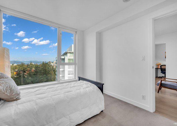 Just on the right floor over the trees and forest allowing this particular NW facing unit can enjoy also open mountain and partial water views along with birghtness and stunning sunsets! A/C in the unit, engineer hardwood floor, beautiful and functional layout creates a pleasant livable space in this building - nestled beside Pacific Spirit Park in the heart of UBC’s Wesbrook Village, it combines nature and modern city living with proximity to shoppings and faculties. Amenities include a gym, yoga studio, social lounges,etc. One Parking One Locker included. Open House: Nov.15 (Sat) 2-4pm.