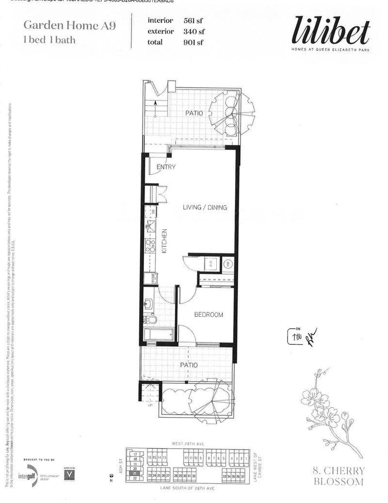 Nestled on a peaceful, tree-lined street, this rare one-bedrm unit offers an abundance of natural light, with windows facing east and west. Just a 5-min walk to QE Park, Hillcrest Community Centre & King Edward Skytrain Station, this property boasts unparalleled convenience. Built by the renowned Intergulf, this garden home features 561 sqft of interior living space and an impressive 340 sqft of private front and back yard. Enjoy the convenience of direct street access, along with underground parking, a spacious storage locker, and 2 bike lockers. Modern living at its finest with air-conditioning, engineered hardwood floors, and high-end Miele appliances. Located in the top school catchment of Eric Hamber Secondary and Edith Cavell Elementary.
