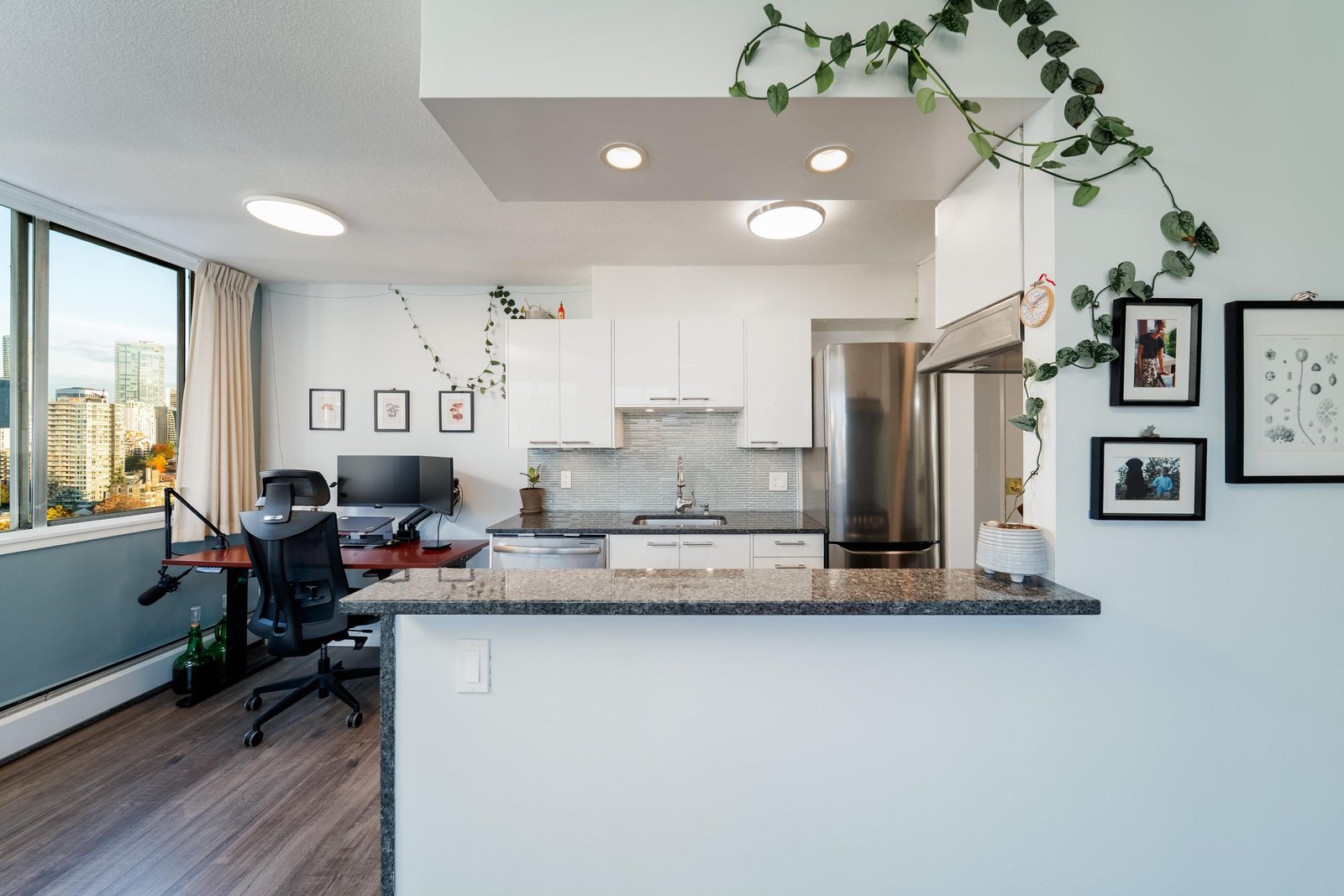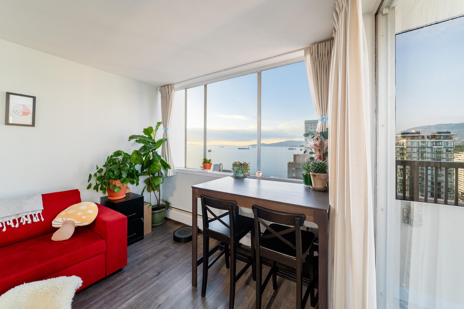 UNIT & VIEW: Bright & inviting 1Bed/1Bath NW corner home on the 20th flr, showcasing panoramic views of English Bay, Mtns & city skyline. The living room windows fill the space w/ natural light & cool ocean breezes, extending to a balcony perfect for morning coffee & city views. Open-concept layout maximizes space, ft. modern kitchen w/ granite counters, S/S appls & ample storage. Generous bedroom offers tranquil ocean & mtn vistas for a peaceful atmosphere. BUILDING & LOCATION Located in the heart of Vancouver’s vibrant West End, steps from beaches, Stanley Park Seawall, bike paths, as well as lively shops, caf??s & restaurants. This building offers excellent amenities, including an indoor pool and sauna. Recent upgrades, plumbing & parkade resurfacing have been paid for by the seller.