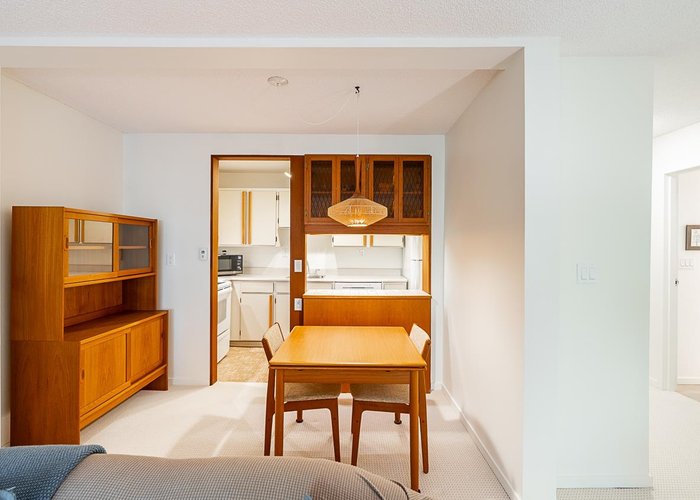 This tastefully updated S/F 1bdr & flex is where modern updates & vintage style come together to create a move in ready home. Offering 680s/f of living space + an additional 82s/f in the solarium. The generous-sized bedroom has a walk-through closet to a semi-ensuite bath & there’s plenty of insuite storage. Recent updates include new carpets, baseboards, solid wood doors & fresh paint. Building amenities incl a central courtyard, rooftop deck, same-floor laundry (in suite with strata approval) & more! Vanier Court is a well-maintained & reputable building, it has an onsite caretaker, a strata-owned suite for financial stability, a new roof and elevator & upgraded common areas. 3 pets are welcome (dogs & cats) & the M/F includes heat h/w & electricity. Welcome to your Home Sweet Home!
