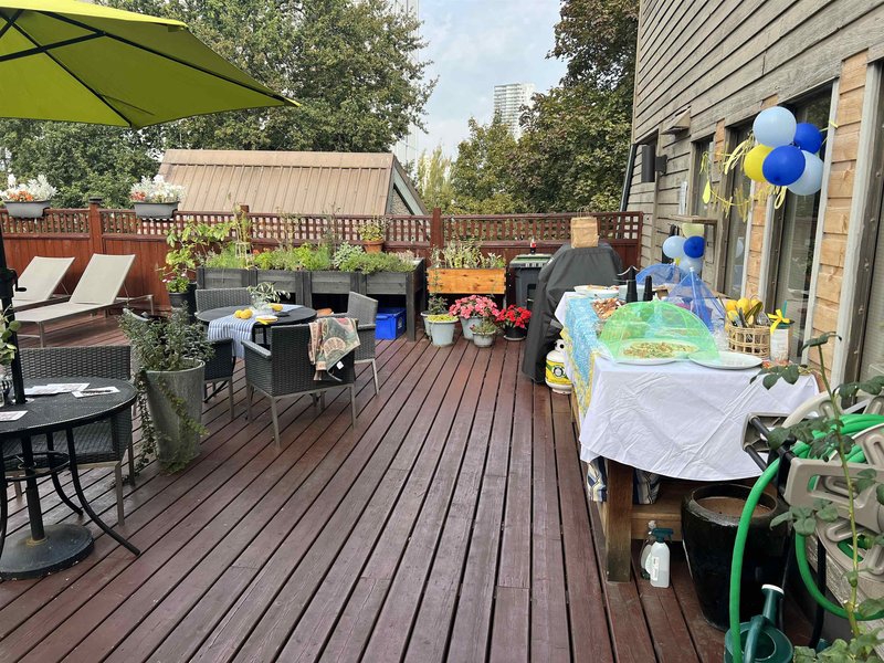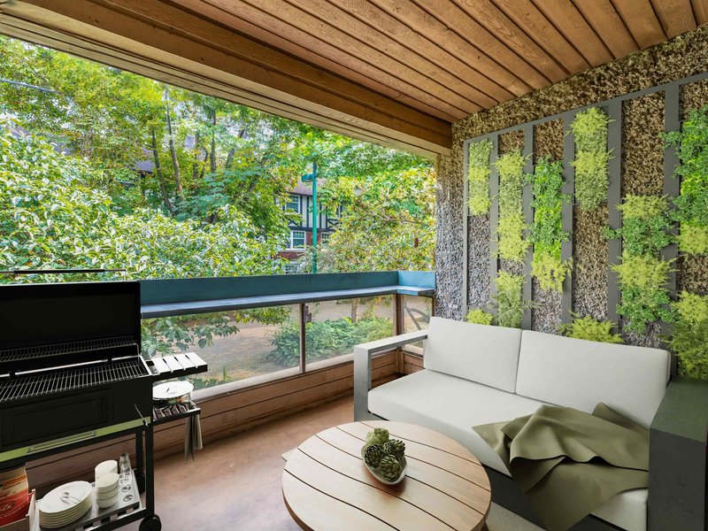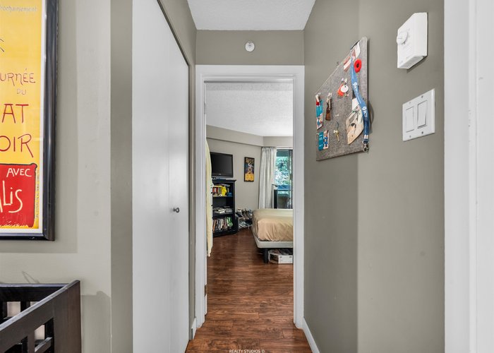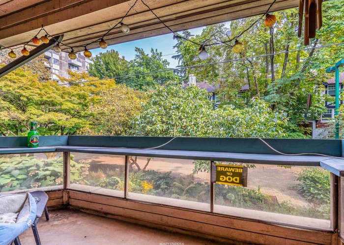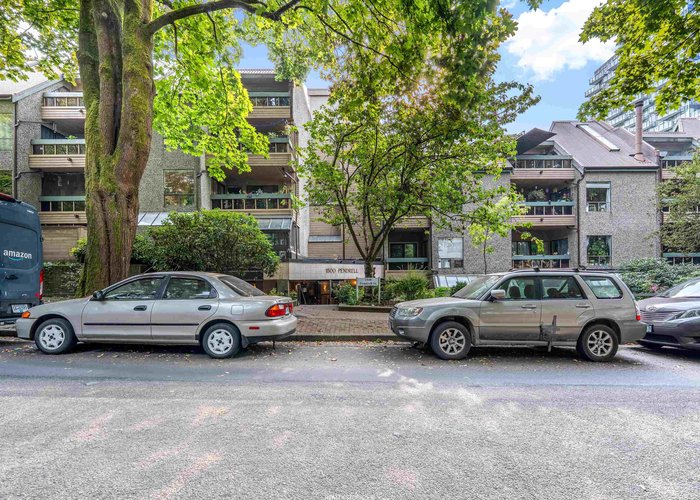 Pendrell Mews is more than a condo complex--it''s a community. This spacious 1 bedroom home has been tastefully updated--a new walk-in shower was added in 2022, and $50,000 was spent opening up the enclosed kitchen and adding pot lights in 2023. The home features an open concept living space, a large bedroom, and in-suite laundry. A quiet balcony, overlooking a tree lined pedestrian mews, is the perfect spot for entertaining or relaxing after a long day. For a building of this era, the updated amenities are impressive: new elevators, a modernized gym, rooftop terrace, entertainment lounge, 2 saunas and updated common showers/bathrooms and a squash court. BONUS: healthy contingency fund, proactive strata council. Some photos digitally staged.