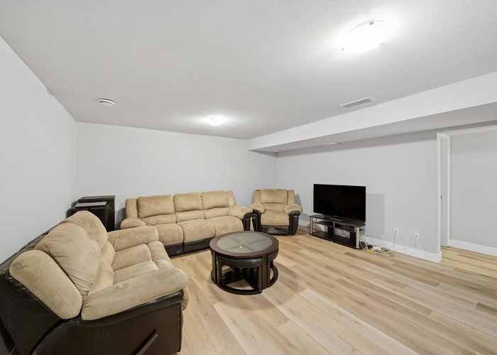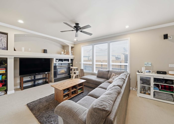 Stunning 2-storey + basement on a quiet cul-de-sac w/ greenspace right out front! Bright open-plan, main floor with hardwood, crown moldings, pot lights, tons of natural light + a huge low-maintenance deck built for hosting. Upper floor boasts 4 spacious bedrooms & 3 baths, plenty of room for everyone plus solid WFH options. Downstairs offers a refreshed 2bdrm suite with separate entry, ideal for in-laws or extra income. South-facing w/ double garage off lane. Brand New cedar fence adds privacy + security. Close to shops, restos, farmer’s market, parks, churches & schools. Northview Golf, Cloverdale Ex Grounds & Athletic Park mins away. Easy access to major highways + future SkyTrain. Quiet, comfy, turnkey - your full package.