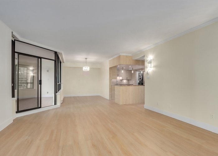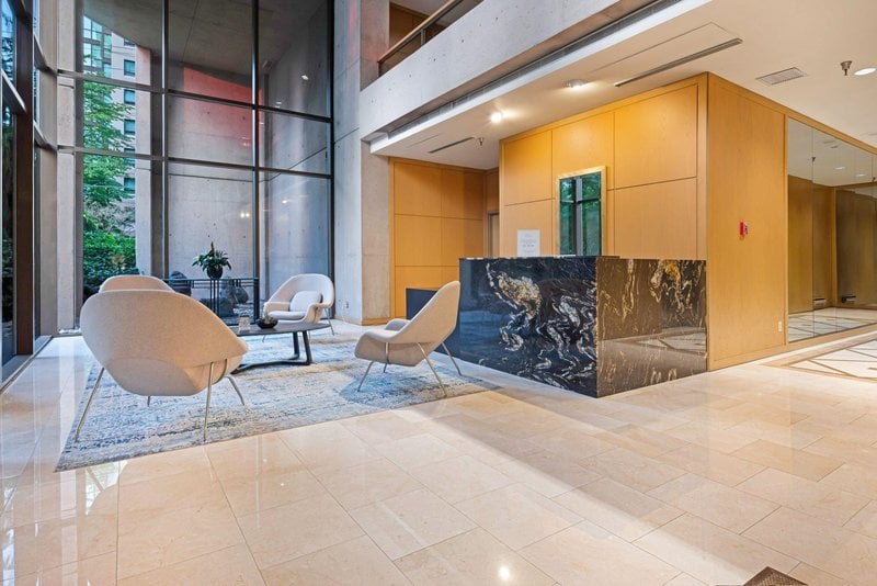 Welcome to The Alberni Place. This fabulous, exquisitely well-maintained building features only 65 units, offering the highest level of comfort, security, and tranquility. Experience the ultimate in turnkey. This meticulously and completely renovated unit offers a rarely available, practical 1,373 square foot floor plan, maximizing both space and comfort. Step inside to discover a world of impeccable taste, featuring brand-new flooring, stunning new bathrooms, and a gourmet kitchen redesigned for modern living.The expansive and spacious living area is warm and vibrant, serving as the perfect setting for relaxation or entertaining. Wake up to serene water views that grace both the bedrooms and the main living space, transforming daily routines into picturesque moments.